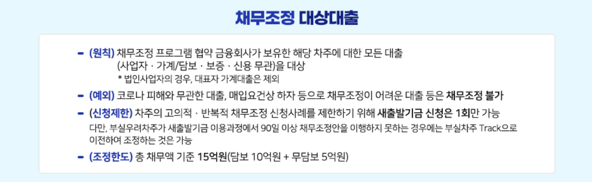 A: 소상공인, 자영업자, 저소득층 등 경제적 어려움을 겪는 사람들을 대상으로 하는 채무 조정 제도입니다.